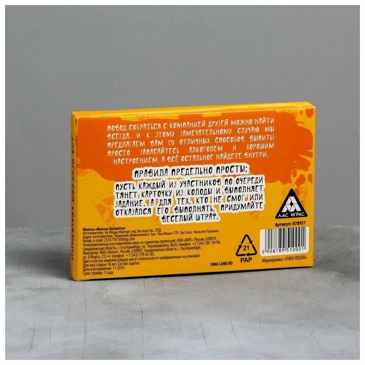 Купить игра для компании "фанты буханты" 20 карт от 100 руб. с доставкой до пункта выдачи в Пошехонье. Интернет магазин ДекаМаркет. Оплата при получении.